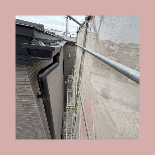 「外壁検査」は足場を解体する前にサイディングの欠けや、傷がないか、樋の水が流れるかなどを検査します。この後、補修箇所があれば補修し足場を撤去します。