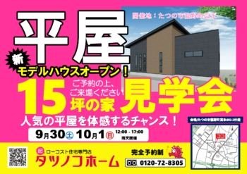 高砂市阿弥陀で15坪+ロフトの平屋モデルのオープンハウスイベントを開催します!